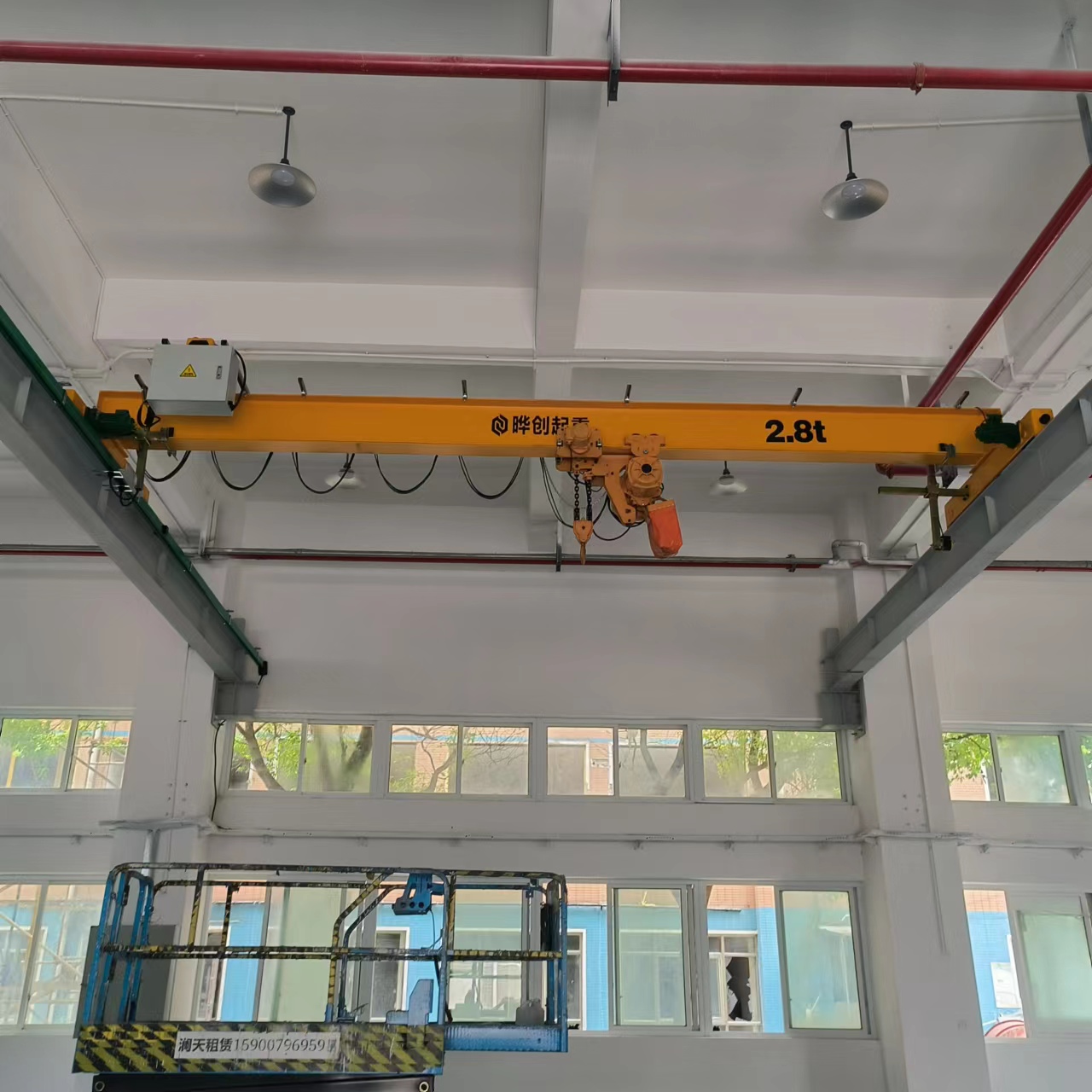 LX型起重機(jī)主要由主梁、電動(dòng)懸掛大車、電動(dòng)葫蘆、縱行梁、橫縱行配電及大車運(yùn)行電箱等結(jié)構(gòu)組成。