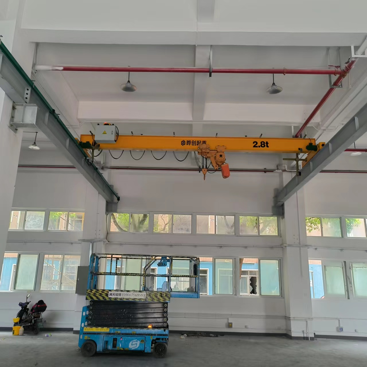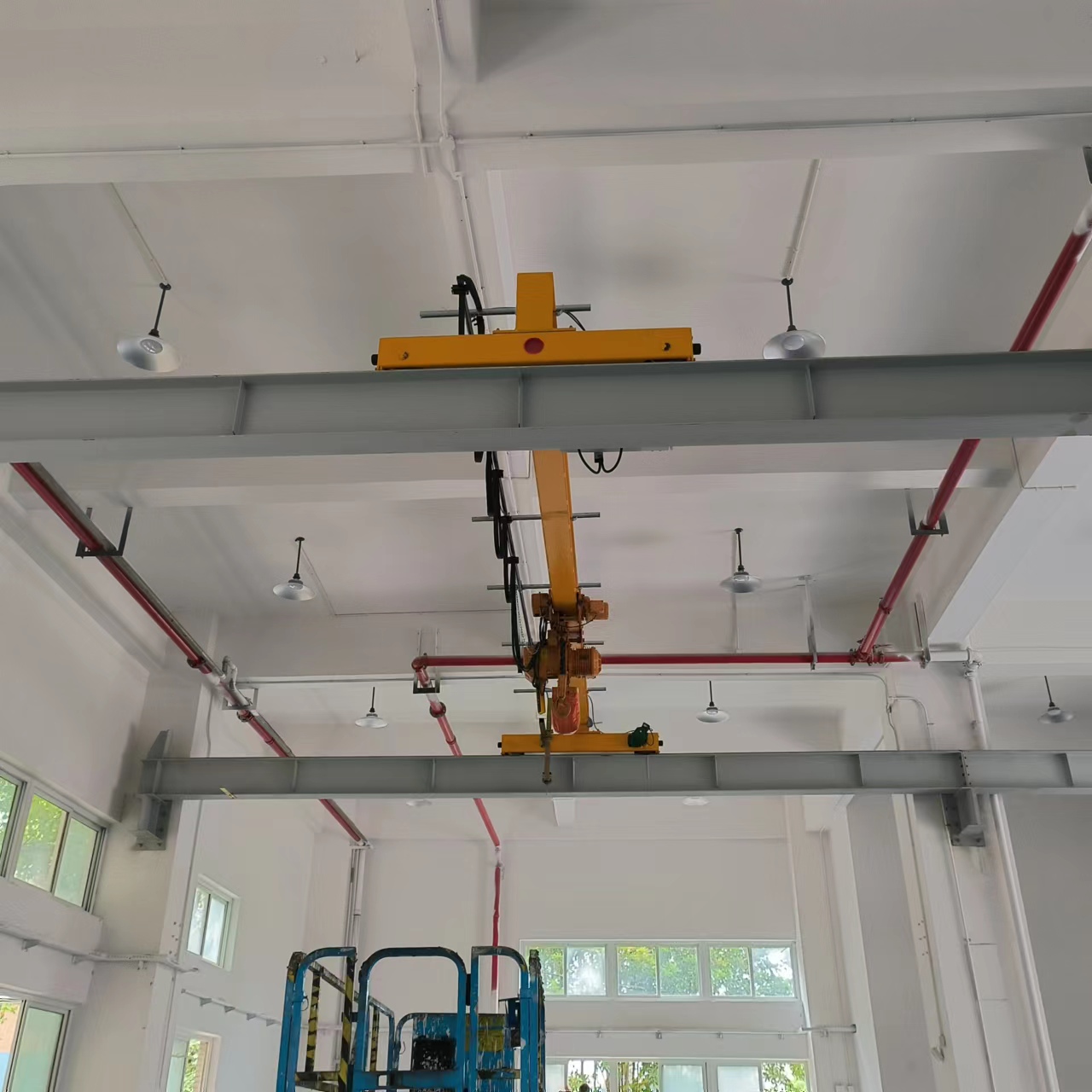 LX型起重機(jī)主要由主梁、電動(dòng)懸掛大車、電動(dòng)葫蘆、縱行梁、橫縱行配電及大車運(yùn)行電箱等結(jié)構(gòu)組成。